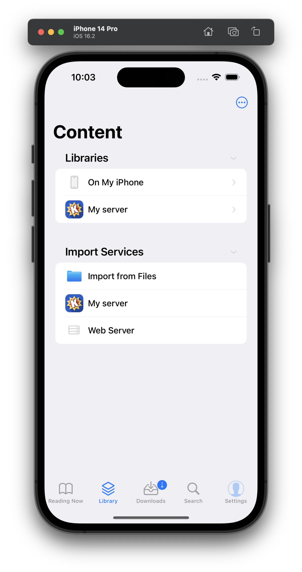 Your Komga server should now appear both as a new library and as a new Import Service. Let's explore both options.