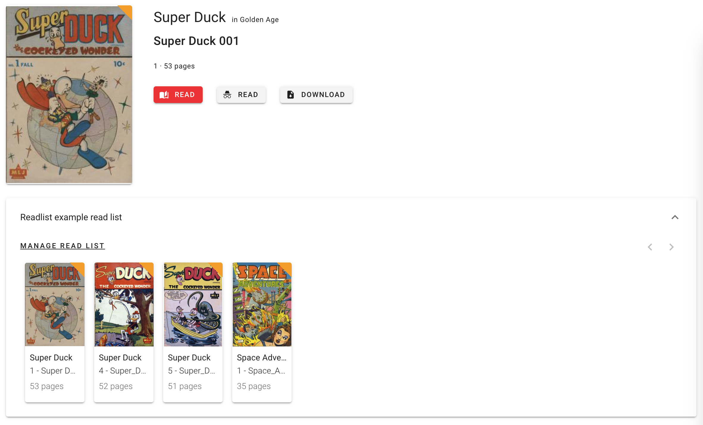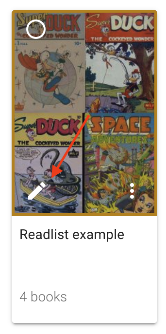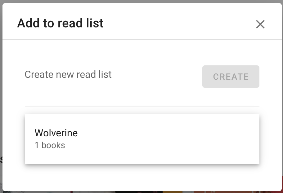 Read lists let you gather related books together. Think of it as playlists, but for books. For example, you might add all the books where Wolverine appears together in a "Wolverine" read list.